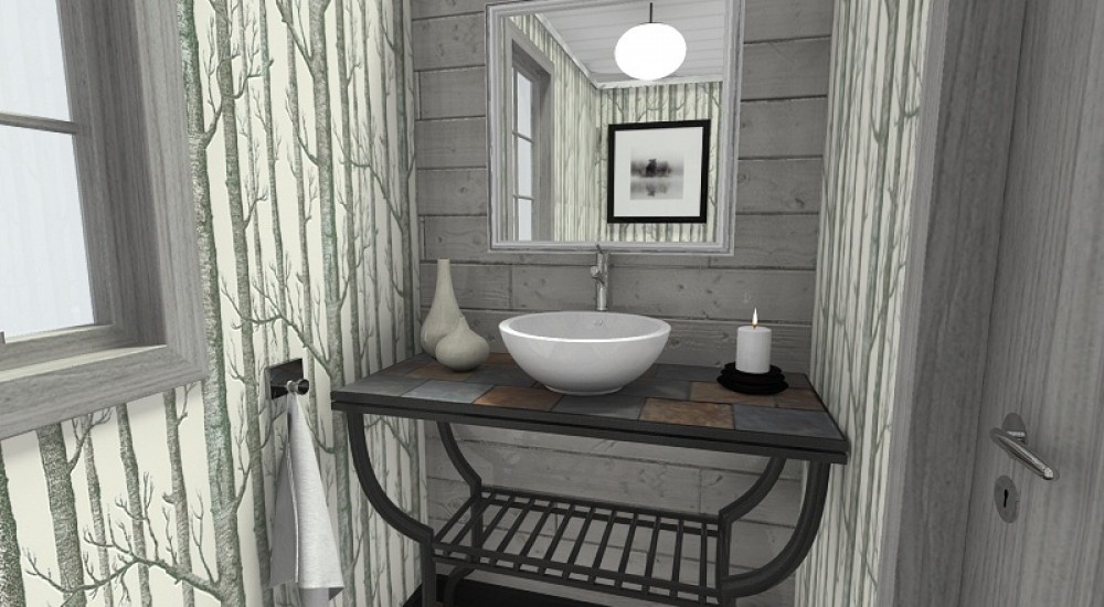 One way to maximize this space and design trend is to first, select your wallpaper. Once you have your print, then you can select the rest of the finishes. We are loving the simple tactic of installing wall sconces around the bathroom mirror, that incorporate one color from the wallpaper’s scheme to really make them pop. As for the remainder of the finishes for your powder room, we suggest keeping them neutral. Utilizing a basic metal finish for your faucet and mirror, while having a neutral colored vanity allows the colors from your vivacious wallpaper to shine without being too much.